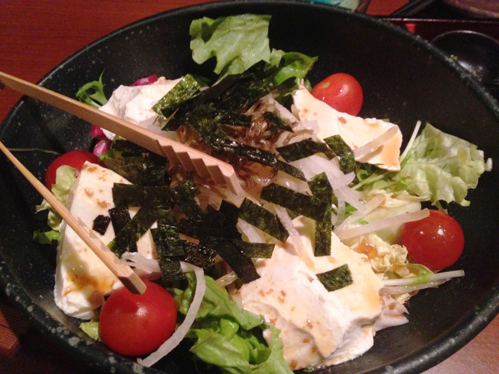 Salad with Tofu, Nori and a great sesame dressing (I love sesame dressing, it really goes with aynthing)