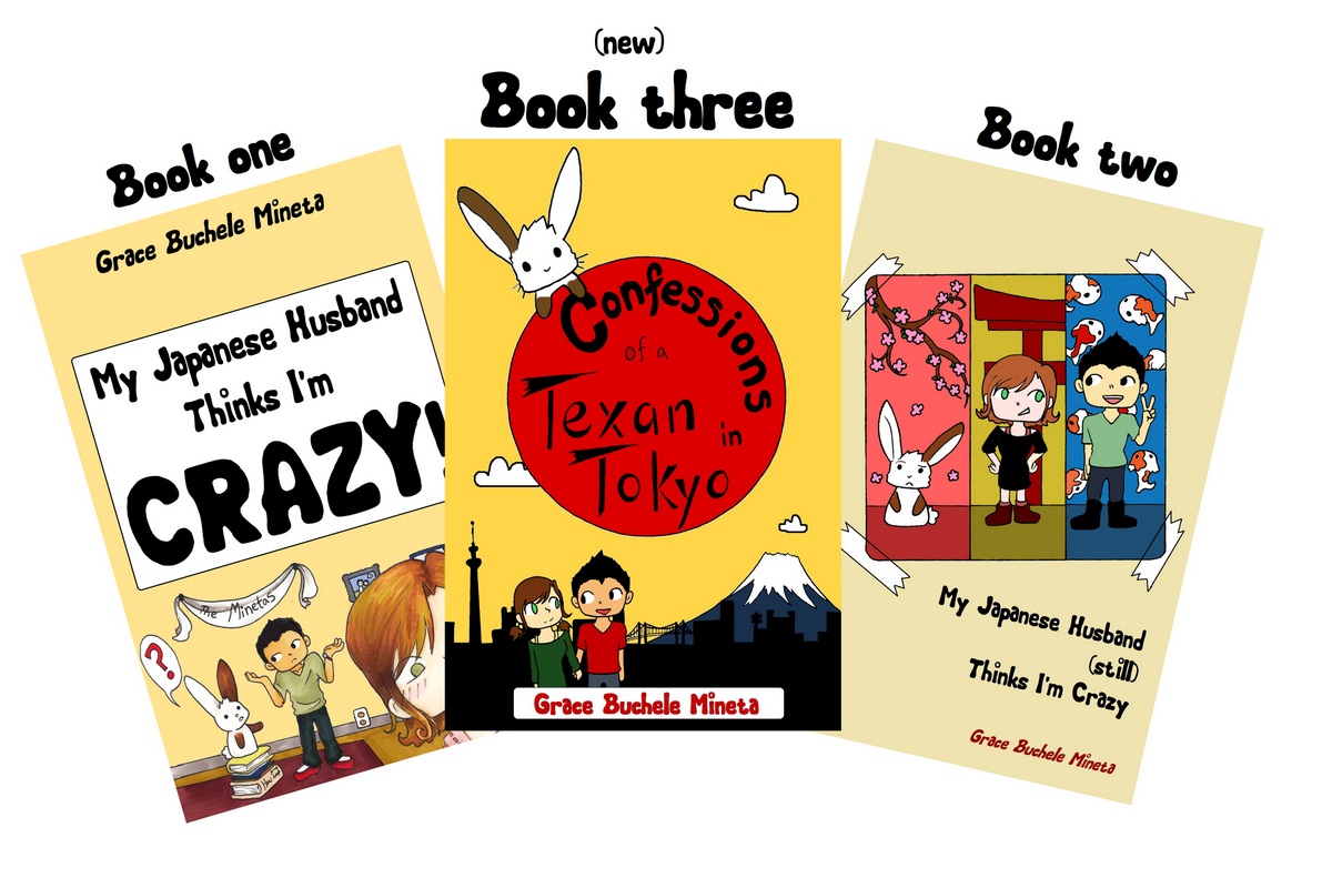“Grace Buchele Mineta is a native Texan, founder of the hit blog “Texan in Tokyo,” YouTuber, and author of the autobiographical comic books, “My Japanese Husband Thinks I’m Crazy” and “My Japanese Husband (still) Thinks I’m Crazy.” She lives in Tokyo with her husband, Ryosuke, where she blogs and draws comics about their daily life as broke newlyweds, navigating silly cultural misunderstandings as an interracial and intercultural couple, and dealing with the loneliness and frustrations of being a freelancer in a foreign country.”