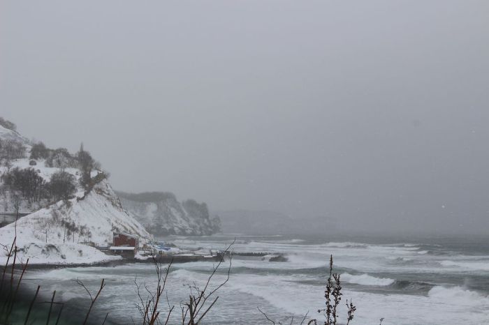 Before settling into the hotel for the day we wanted to drive to the Yotei-san, a mountain with a supposedly spectacular view. Supposedly, because on our way there we were caught in a snow storm and decided to turn back. I hadn’t seen such a fierce snow storm before and it was difficult to even see the streets. A few minutes after we turned back we heard over the radio, that every street around the Yotei-san was close because of a blizzard. But I did not regret driving out there, because the view of the rough sea on one side and snow-covered cliffs and mountains on the other was breathtakingly beautiful.