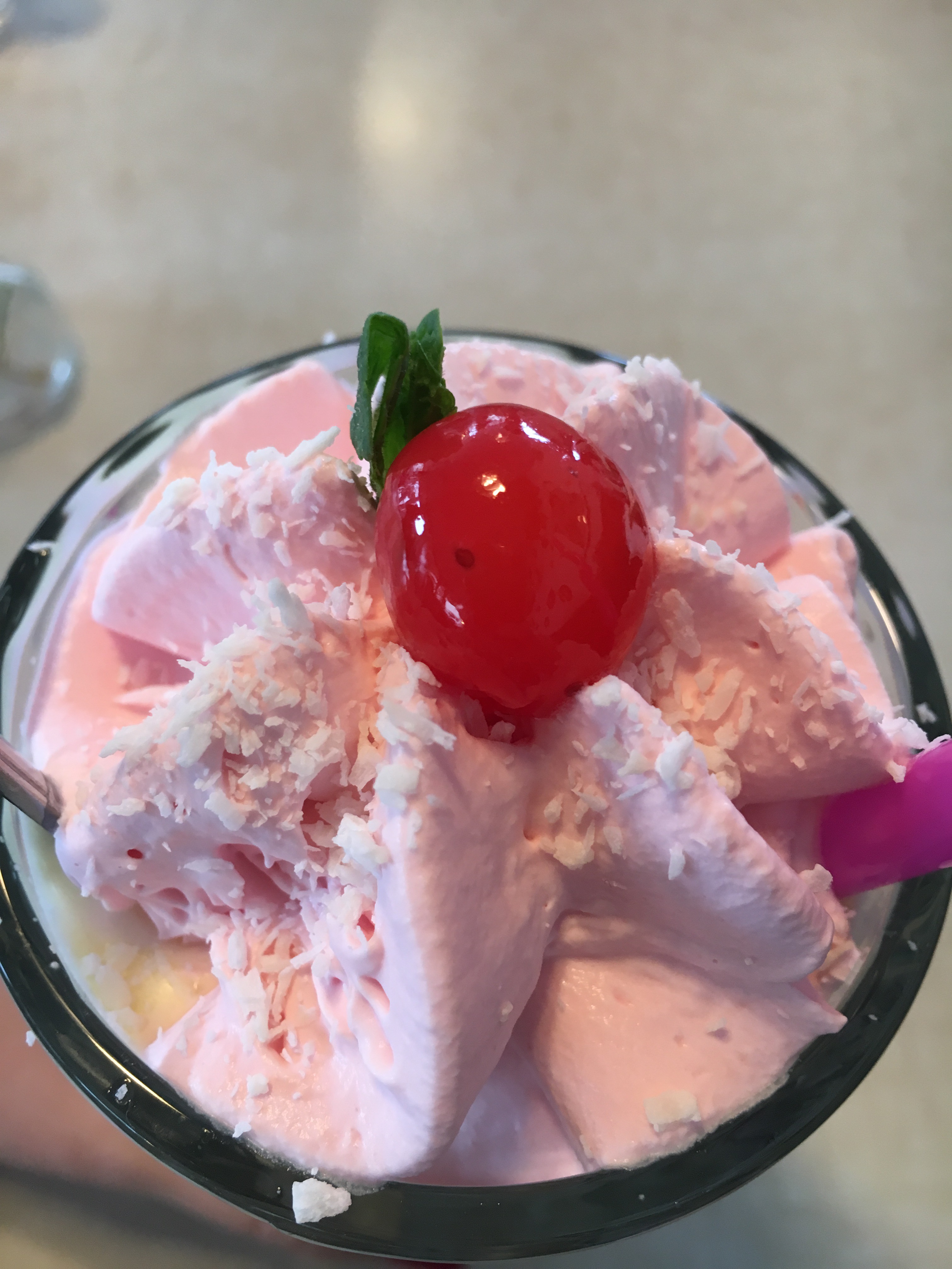 But even though we were quite full we couldn’t possibly leave without trying one of their shakes and I decided on the Coco Loco, a vanilla ice shake with crushed Raffaellos inside and pink whipped creme on top, brought to perfection with a cherry. So delicious!